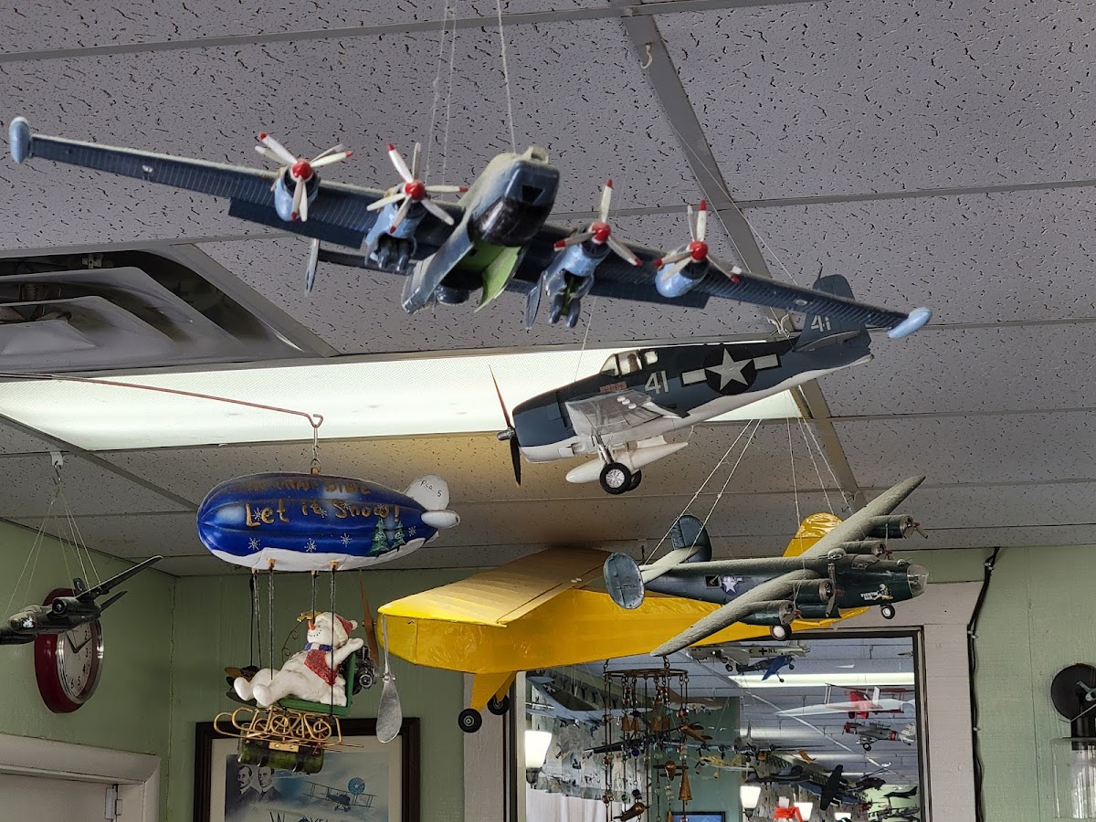 Great staff, delicious food. Breakfast all day. Cute things to buy/ fresh made pies. We did see a small plane and helicopter take off. Other planes were on the ground. Price more like 8-13 per person.