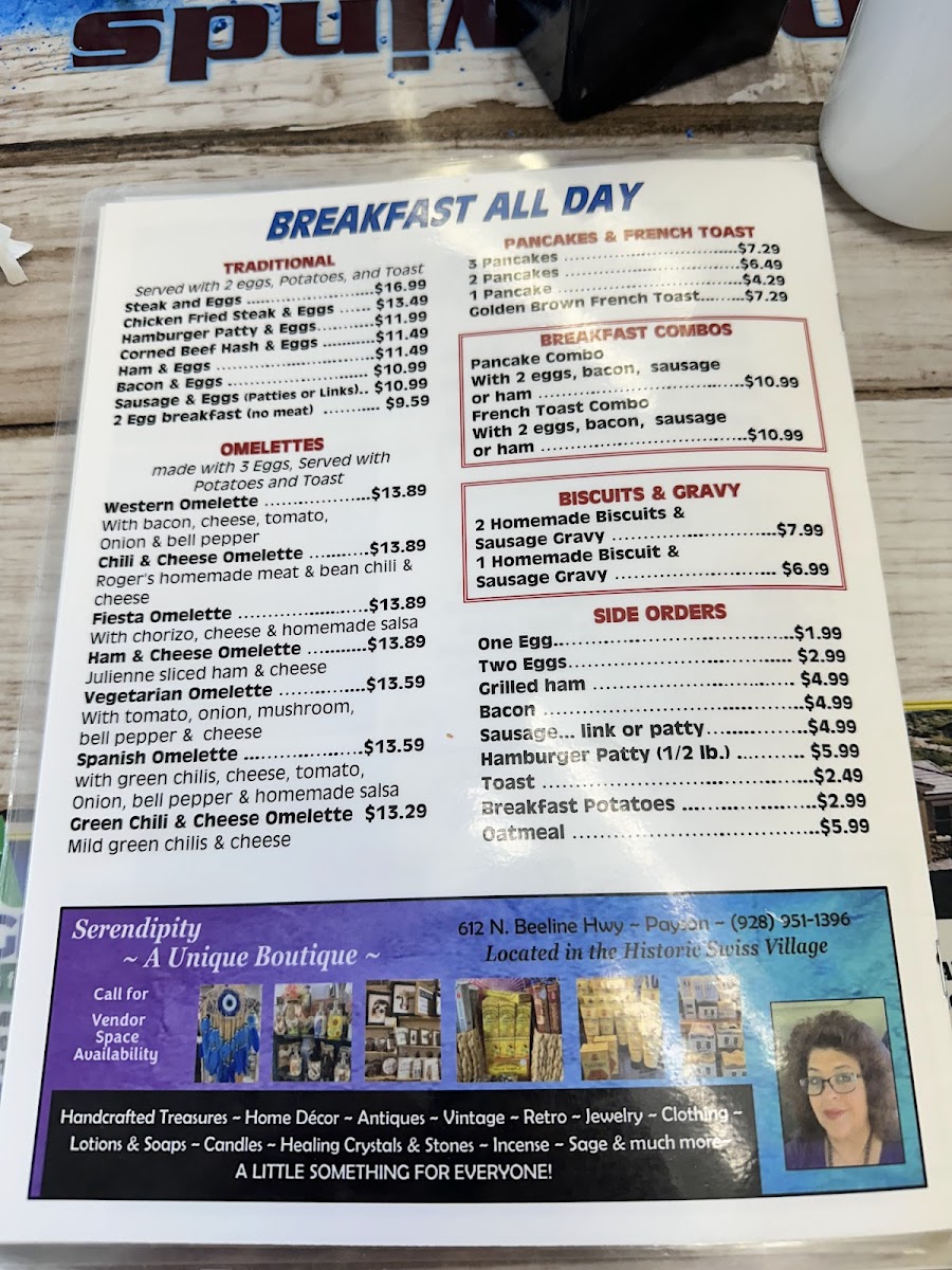 Fun local hangout with lots of atmosphere with an aeronautical theme. Great views of the valley and airstrip from the restaurant. Best of all their pie are awesome and world renowned.. be sure to have a slice with breakfast and take a few home with you to share, they won’t last long and you’ll be the hit of the event.