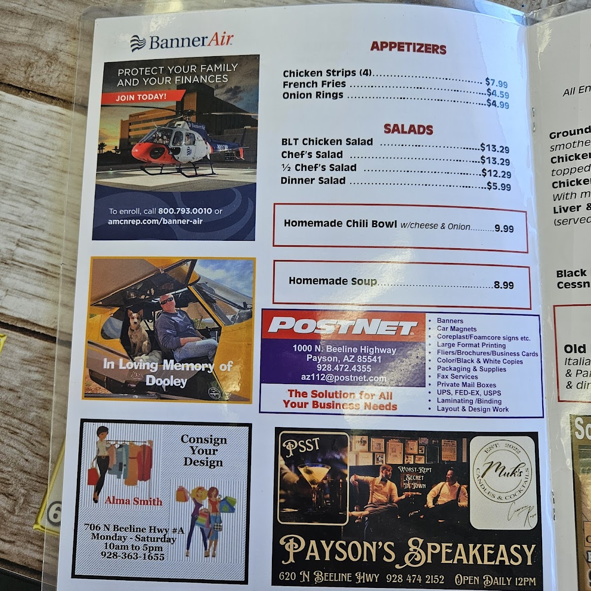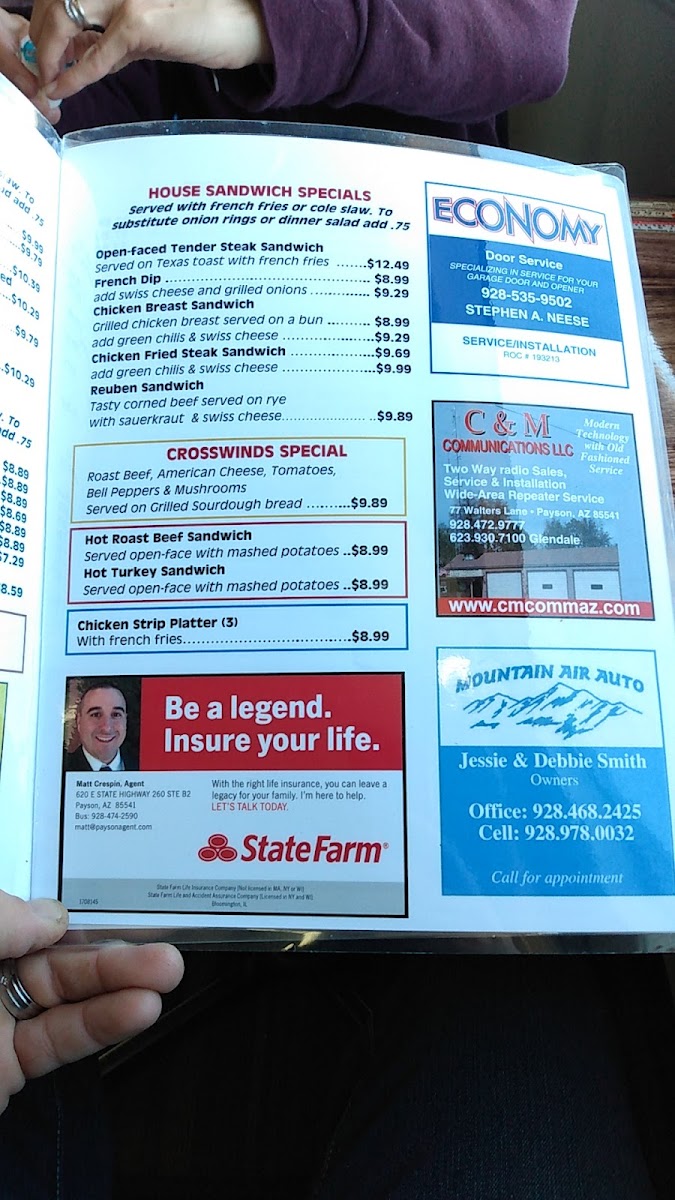 Welcome to Crosswinds Restaurant, where the charm of American cuisine meets the thrill of aviation! Nestled at 800 W Airport Rd B in Payson, Arizona, this delightful eatery is not just a dining destination—it's an experience that captures the spirit of flight and the warmth of home-cooked meals.